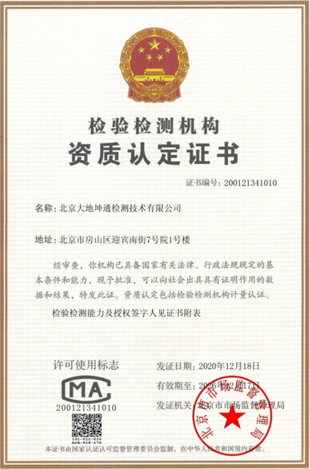 2020年12月18日,顺利通过国家认证认可监督管理委员和北京市市场监督管理局审核,获得CMA资质认定证书。